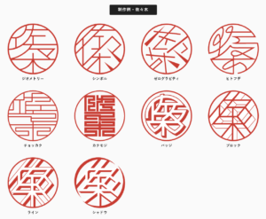 図形と文字の美しさが融合したデザイン性の高いスタイリッシュなはんこ「TYPO」シリーズ。