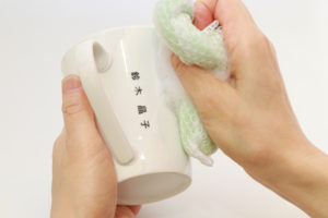 さらに水洗いにも耐えますので、コップや食器にも押せて、ゴシゴシ洗っても平気なんです。