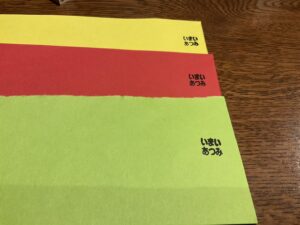 上から、黄色・赤・黄緑です。