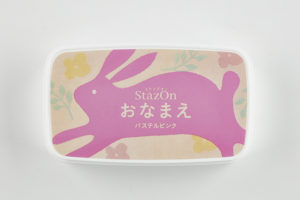 おすすめは多目的スタンプインクのステイズオンおなまえ。いろいろなものに押せる万能インクです。