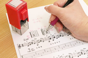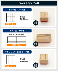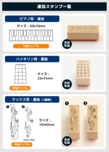 おなまえーるを販売する岡田商会では、楽器練習に役立つ、コード、運指スタンプを販売しています。