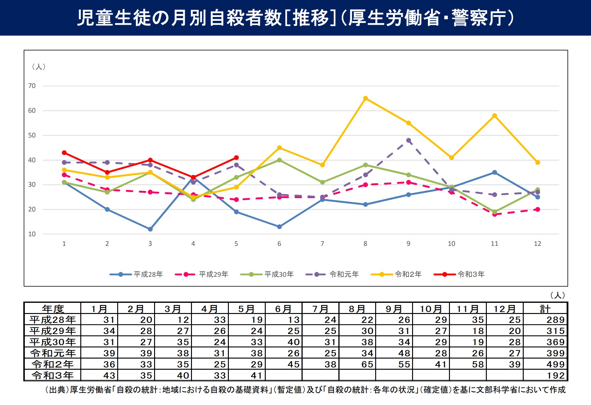 上記は児童生徒の月別の自殺者数です。