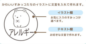 このイラストスタンプとお名前スタンプを活用すれば、仕上がりがかわいくなり、お子さんも喜ぶはず。