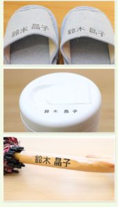 おむつやタオル、スリッパ、寝具などにもわかりやすく記名できます。