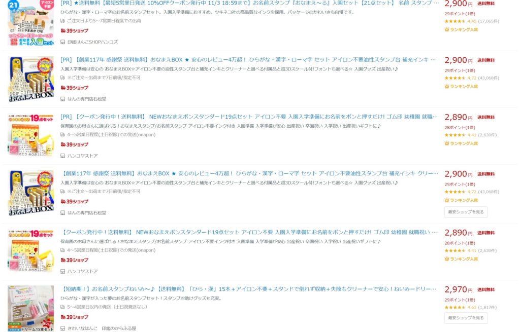 どこで買おうかと色々調べると、あまりにも多くのお名前スタンプが売られていてびっくり! という方が多いかと思います。