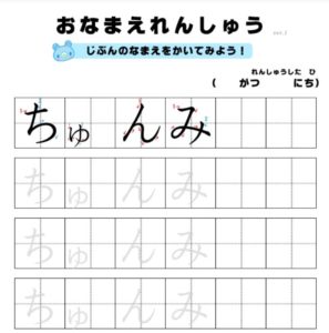 入学前から保護者さんと一緒に楽しくお名前書きの練習をするとよいですよ。