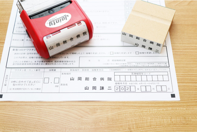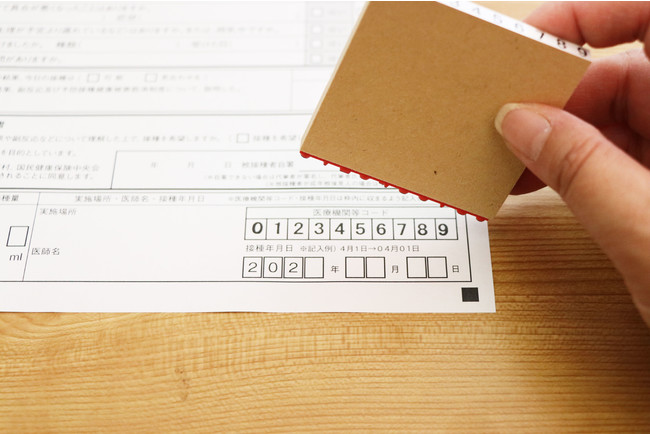 医療従事者のみなさまの手書きの負担や書き間違いを減らし、誤った摂取の防止にも使える「新型コロナワクチン接種スタンプ」。