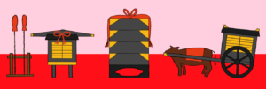 その下が三人の仕丁(しちょう)と呼ばれる結婚式の補佐をする人が並びます。