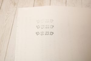 力を均等にしてお名前スタンプを押さないと、はじっこが欠けてしまうことも。