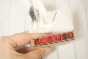 白いスタンプパッドにつけても黒が残りますので、まずは綺麗にしてください。