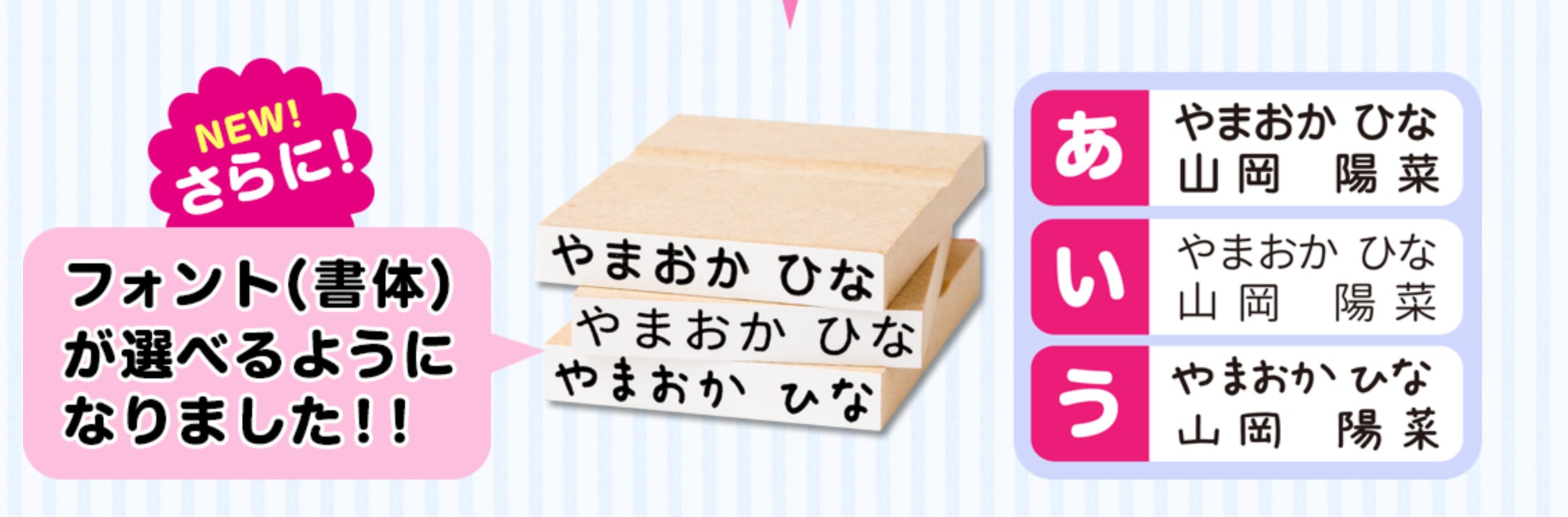 また、今まではお名前スタンプの文字のフォントが選べませんでしたが、