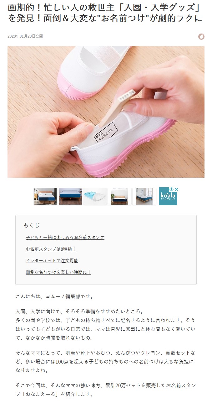 先日、ヨムーノさんでおなまえーるを取り上げて頂きました!