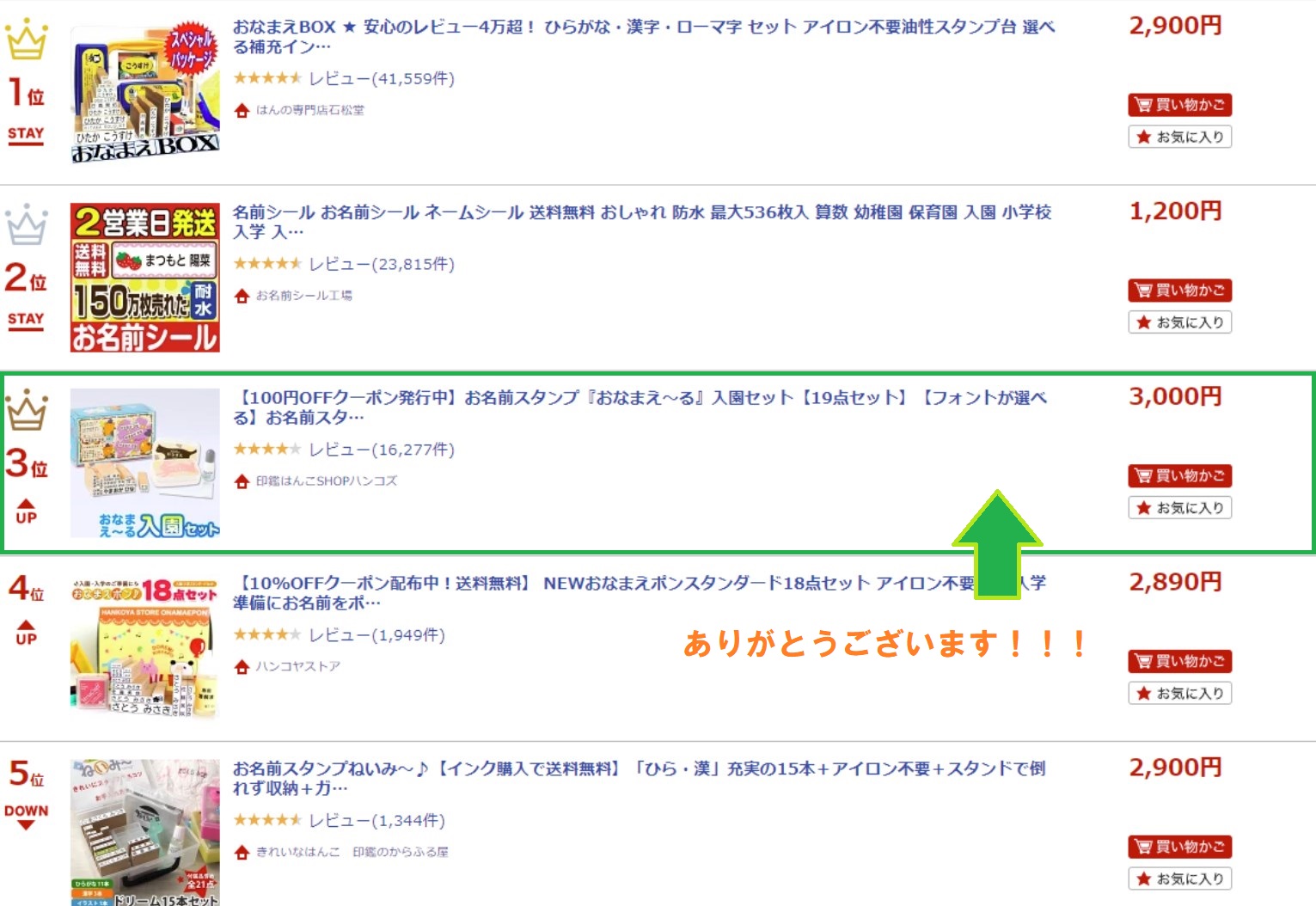 おなまえーる、楽天デイリーランキングで3位になりました!!