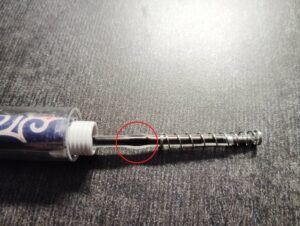 このボコッとした部分よりもペン先側にバネをかぶせることをおすすめします。