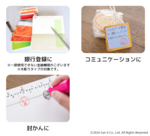 サインがわりや宅配便の受け取りなどはもちろん、お子さまの連絡帳やごほうびスタンプ、ちょっとしたお仕事などにも使えるセルフインクタイプと、全国ほとんどの金融機関で登録できる木彫りタイプの2種類。