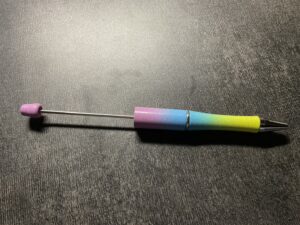 ボールペンはこのように変わった形をしていて、細い棒のところにビーズを入れるのです。
