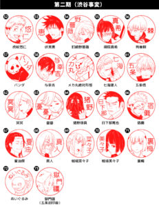 呪術廻戦各TVシリーズで表情を変えるキャラクターたちをそれぞれ忠実に再現した「呪術廻戦はんこコレクション」。